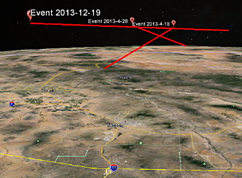 I lead a group of individuals in a project we call the Desert Fireball Array. It consists of 6 video cameras mounted on roofs all over the Tucson area staring at the night sky. The video from each camera is continuously recorded on a computer that always saves the last 5 minutes. When a meteor starts burning in the atmosphere, the bright light triggers the computer to save the previous few minutes and record the fireball until the event is over. When we have more than two cameras simultaneously record the same event, we can triangulate the meteors trajectory that is then loaded into Google Earth and visualized in 3D. This allows us to calculate the zone where the meteor landed (if it’s big enough).